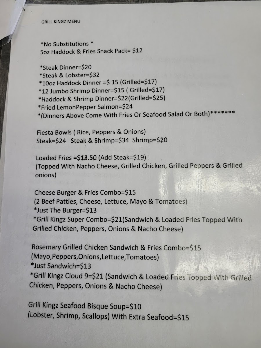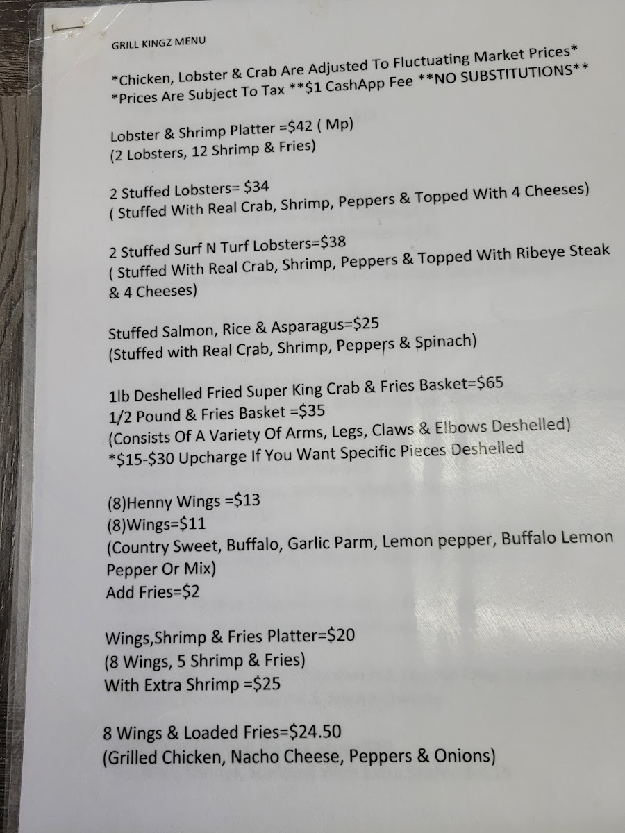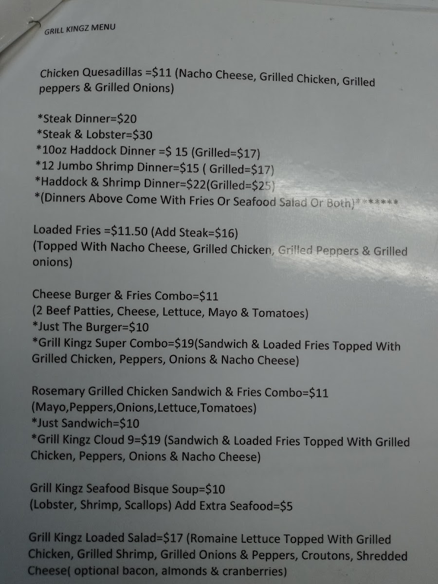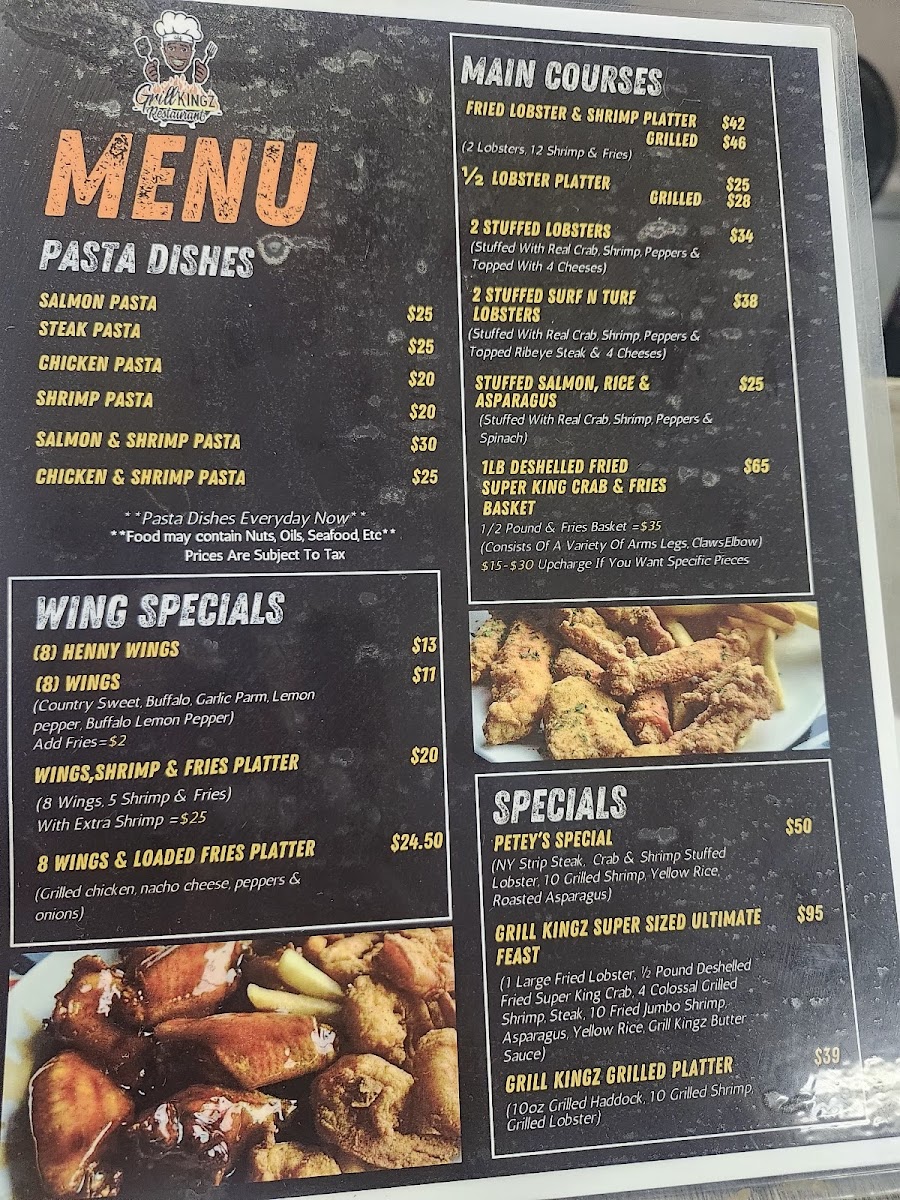 Welcome to the Grill Kingz Restaurant Menu, where every dish is crafted with a passion for great flavors and fresh ingredients. Whether you're in the mood for sizzling steaks, juicy burgers, or grilled specialties, there's something here to satisfy every craving. The menu features a variety of options, from classic BBQ to unique grill creations, each bursting with savory goodness. If you're a fan of hearty meals and bold flavors, you're in for a treat. Dive into our selection of mouthwatering appetizers, tender meats, and tasty sides that perfectly complement the main dishes. With every bite, Grill Kingz brings the joy of good food to the table. So, take your pick and enjoy a delicious meal in a relaxed, inviting atmosphere.